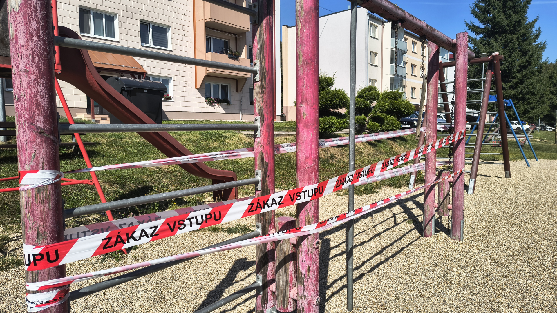 V stredu minulý týždeň, keď sme sa o situáciu začali oficiálne zaujímať, pribudla prakticky okamžite na detskom ihrisku páska s označením zákaz vstupu.
